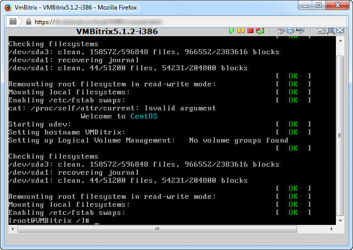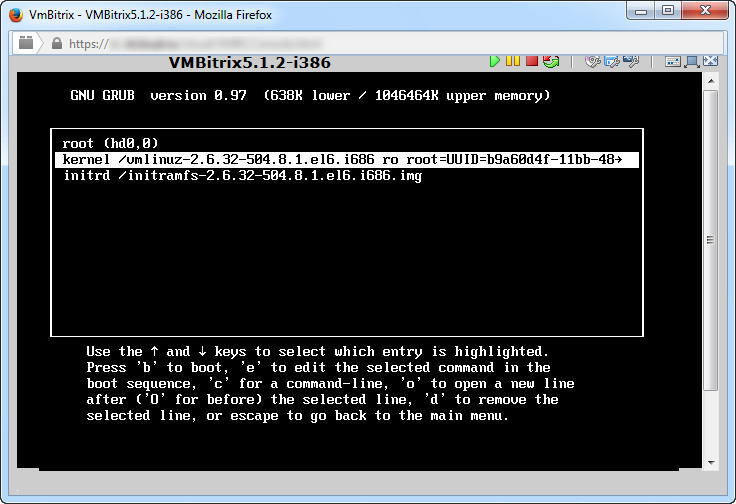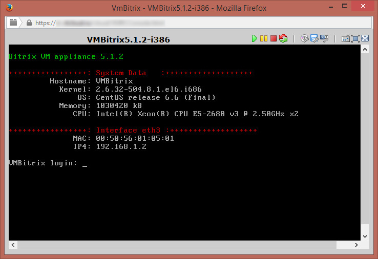 1. С помощью VNC консоли подключаемся к BitrixVM,